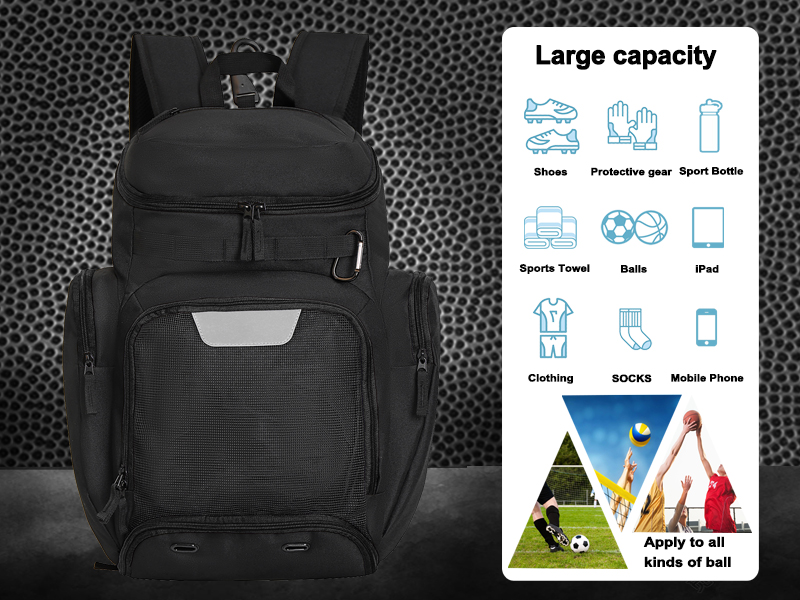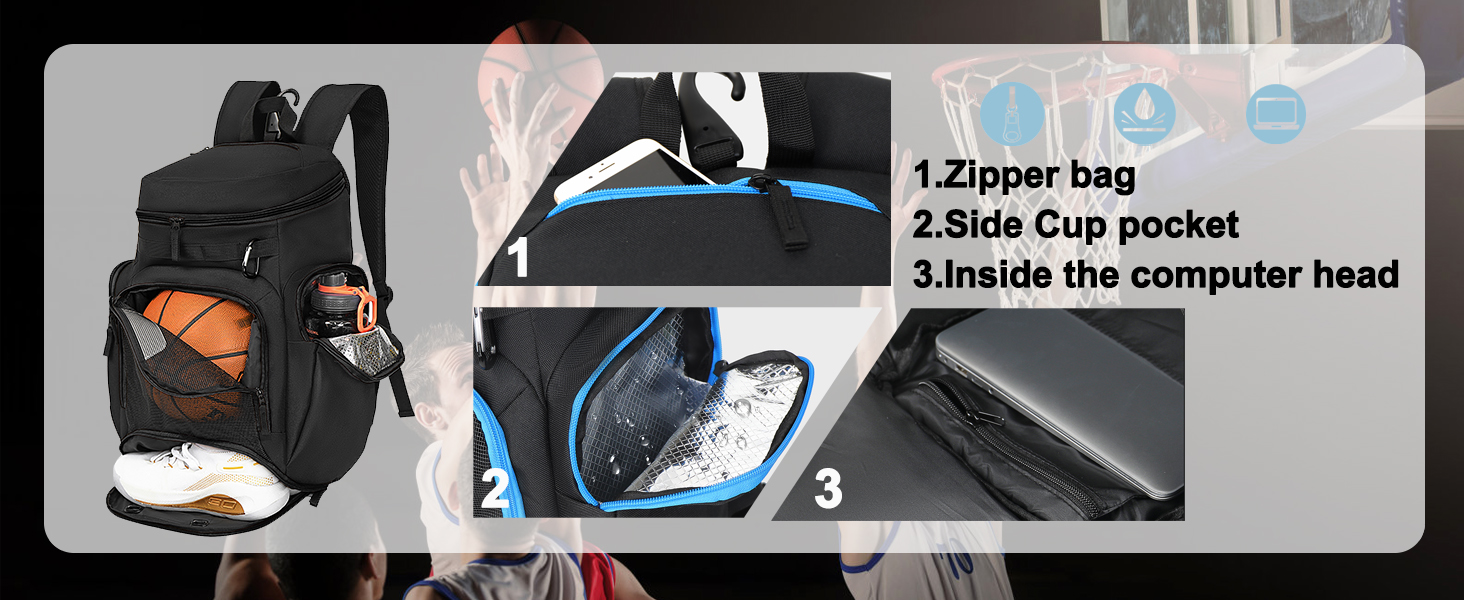 The top of the basketball bag is designed with a separate pocket, which is convenient for our daily storage of mobile phones, keys or other things