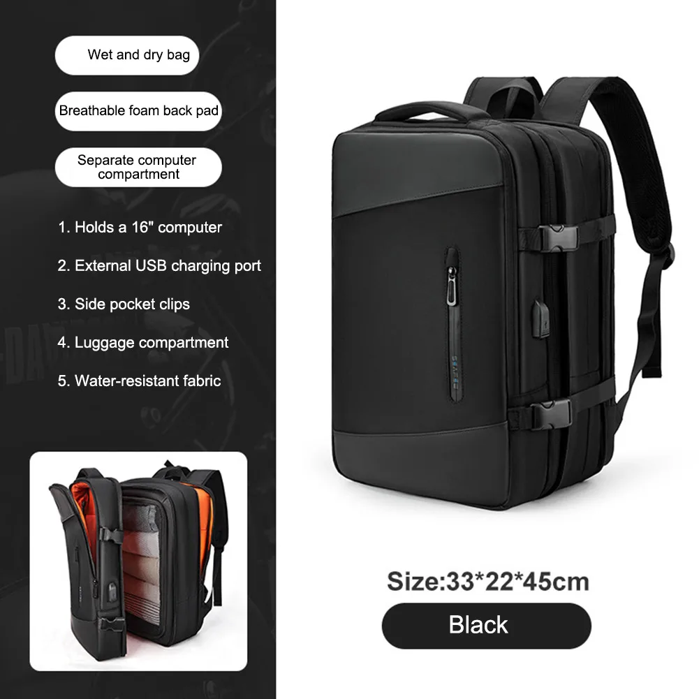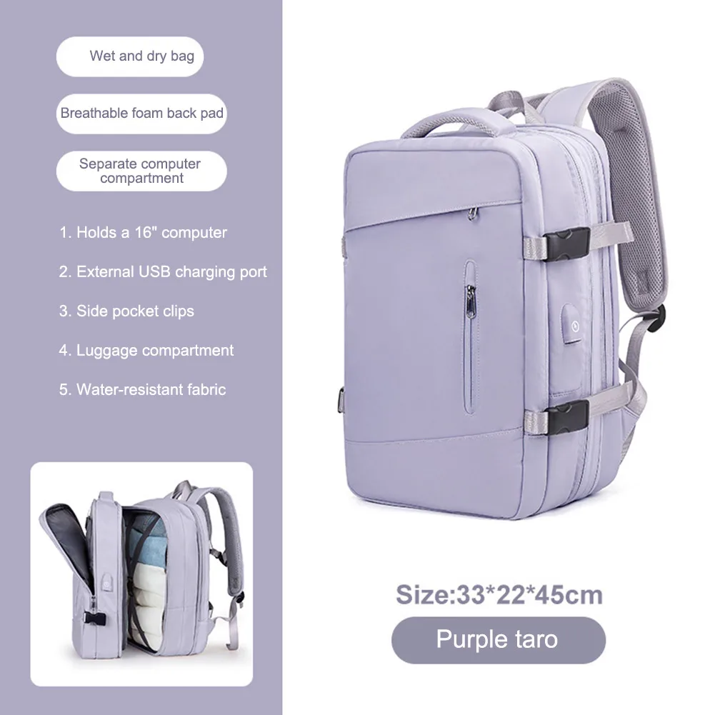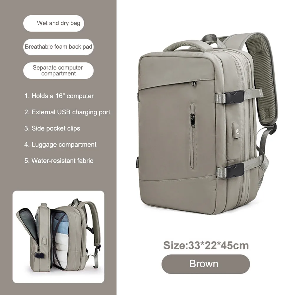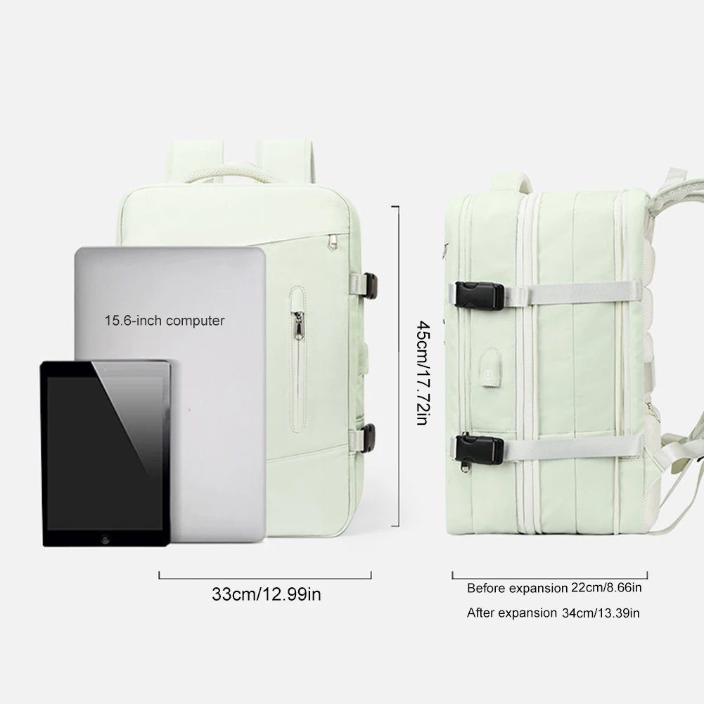 3.Expandable and Versatile: With a expandable size of 45*33*34cm/17.72*12.99/13.39in, this backpack offers ample storage space for your belongings. Whether you're going on a short trip, carrying a laptop, or using it as a college backpack, it can accommodate all your essentials.The travel suitcase-style design allows you to easily carry it onto airplanes, making it suitable for 3-5 day trips with ease. It offers convenience and practicality for your travel needs.