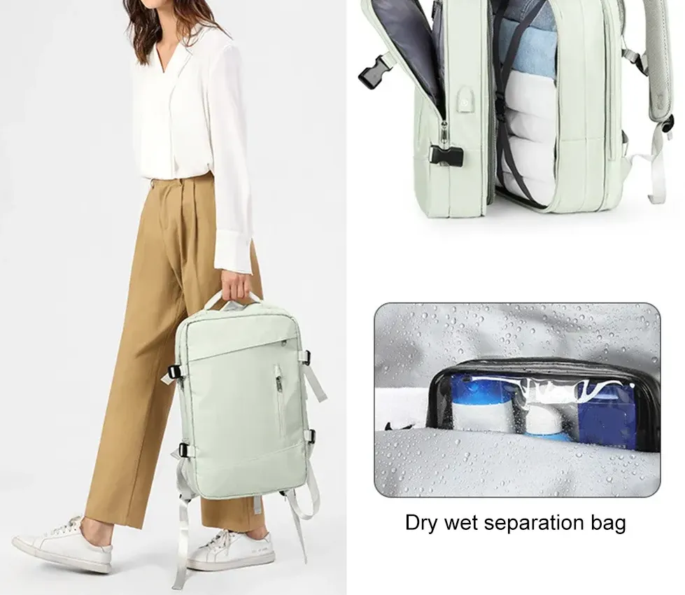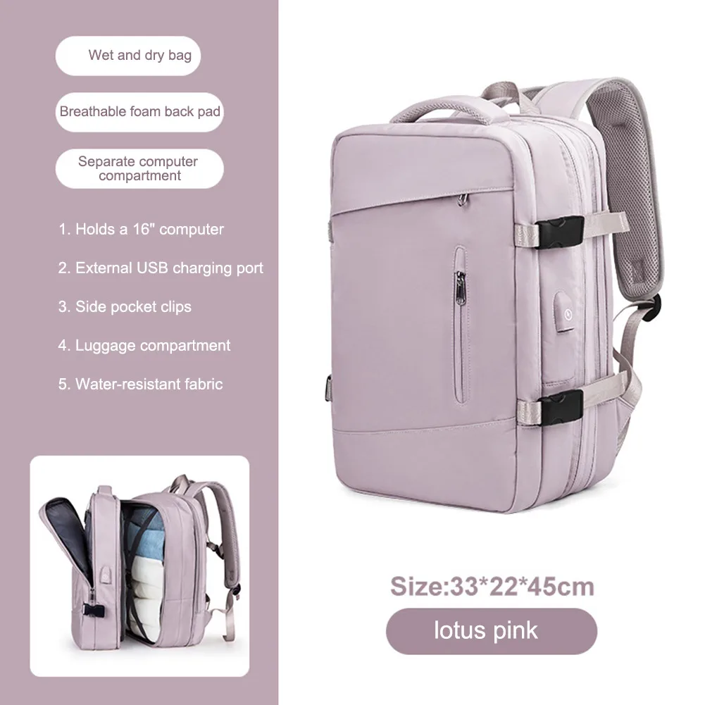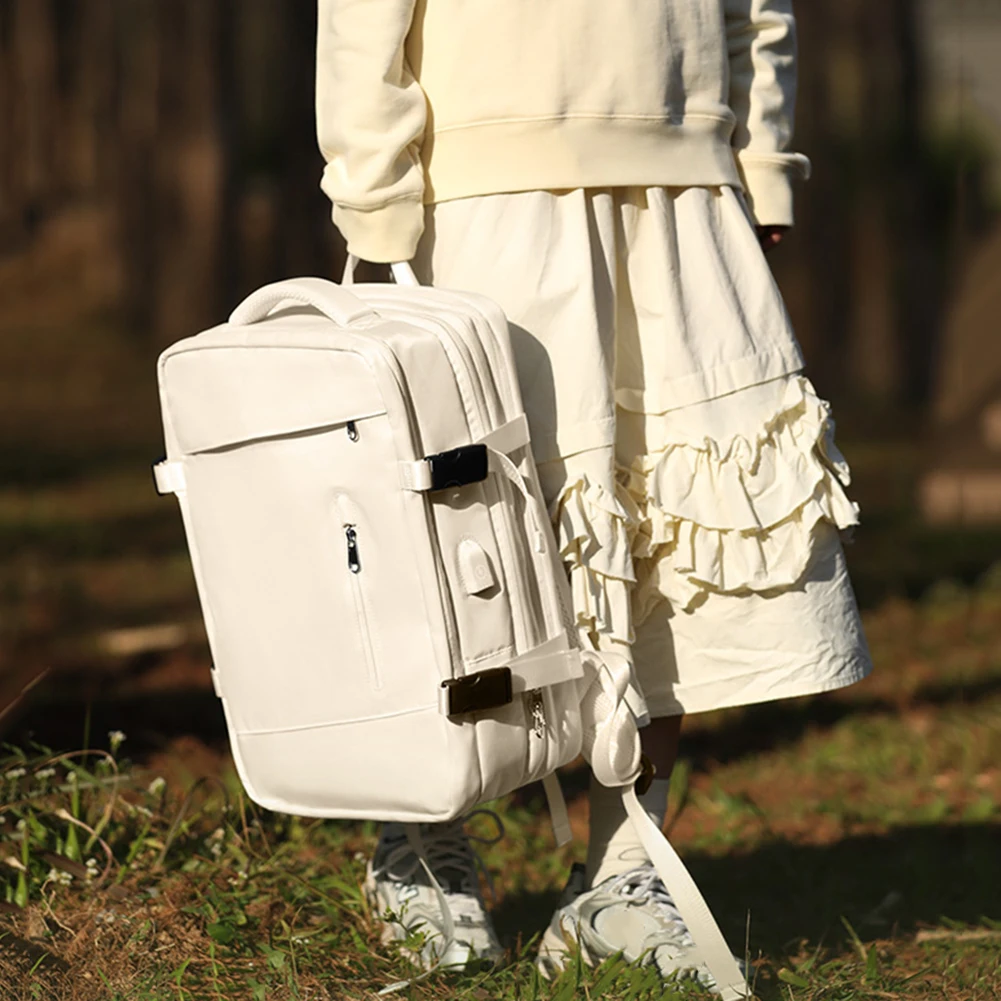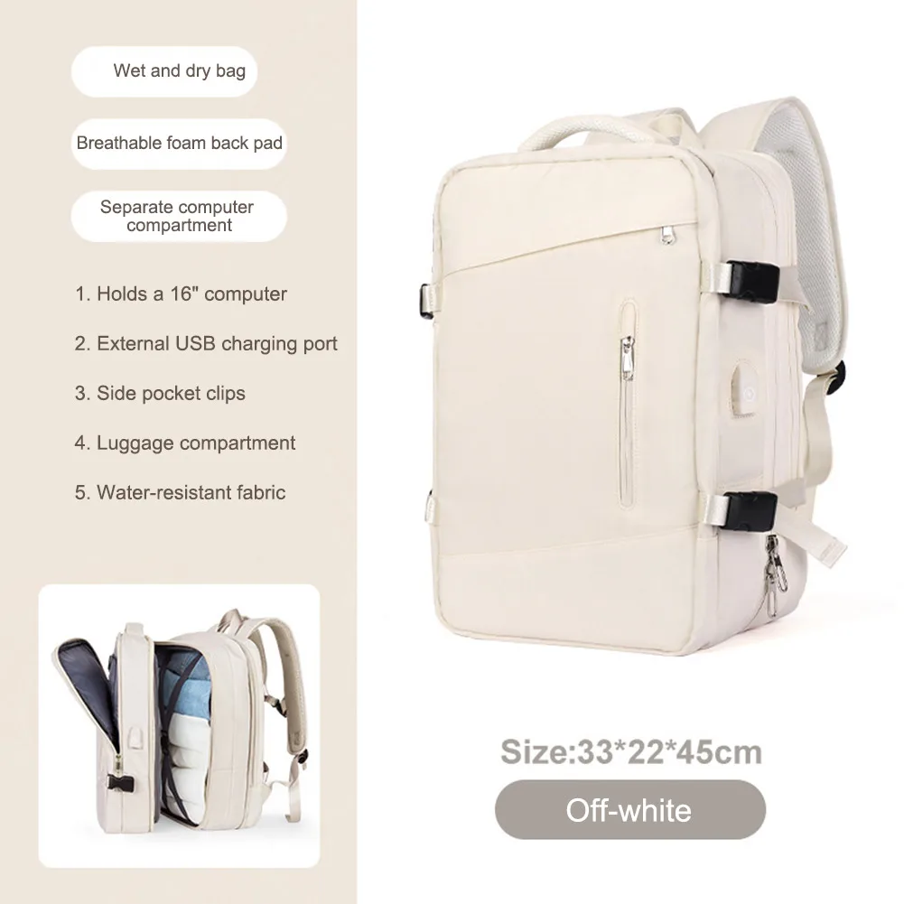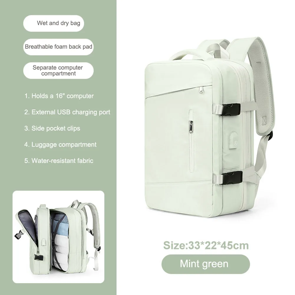 3.Expandable and Versatile: With a expandable size of 45*33*34cm/17.72*12.99/13.39in, this backpack offers ample storage space for your belongings. Whether you're going on a short trip, carrying a laptop, or using it as a college backpack, it can accommodate all your essentials.The travel suitcase-style design allows you to easily carry it onto airplanes, making it suitable for 3-5 day trips with ease. It offers convenience and practicality for your travel needs.