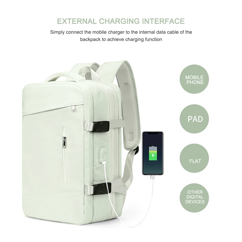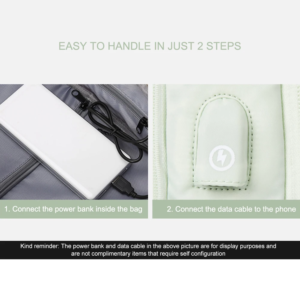 5.Built-in Charging Port: This backpack features an external USB charging interface. Simply connect your power bank to the internal data cable, and you can conveniently charge your devices on the go. Stay connected and powered up wherever you are.