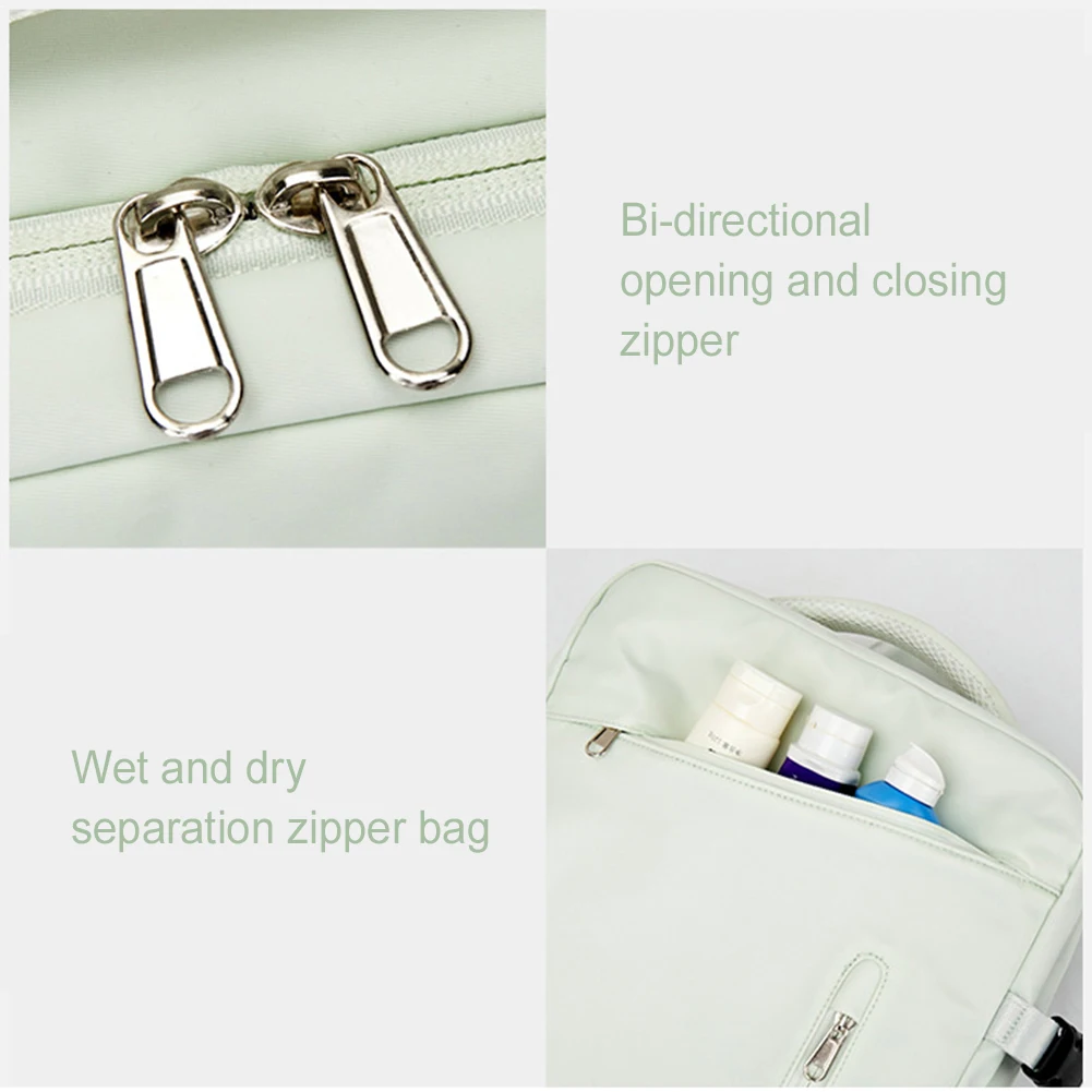 2.Efficient Organization: The backpack features a wet/dry separation zipper pocket, allowing you to store sweaty or wet clothes, towels, toiletries, and other items separately. This ensures cleanliness and convenience during your travels.The chest buckle design helps stabilize the backpack, preventing it from shifting while you're on the move. It provides added security and comfort.