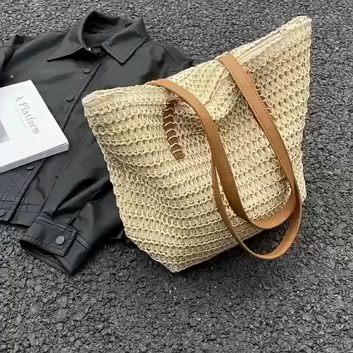 Casual French large-capacity woven forest tote bag Summer beach straw bag One-shoulder armpit tote bag