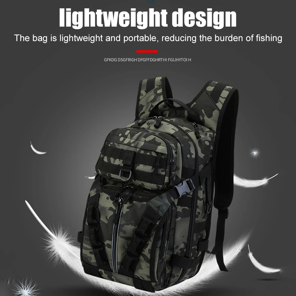• Tactical design :The backpack's tactical design ensures that your gear is organized and easily accessible, allowing you to focus on your fishing without worrying about losing anything.