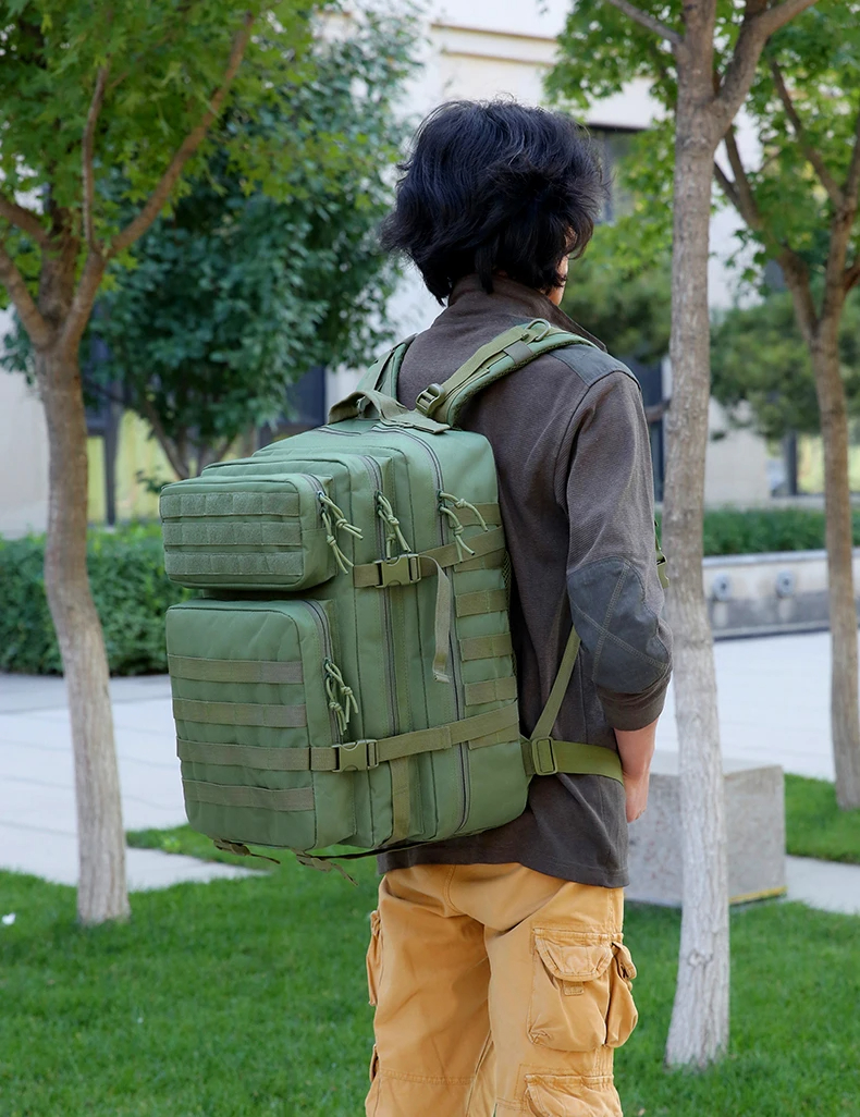 Men Backpack 45L 3P Soft Back Outdoor Waterproof Canvas Backpack Hiking Camping Hunting Bag