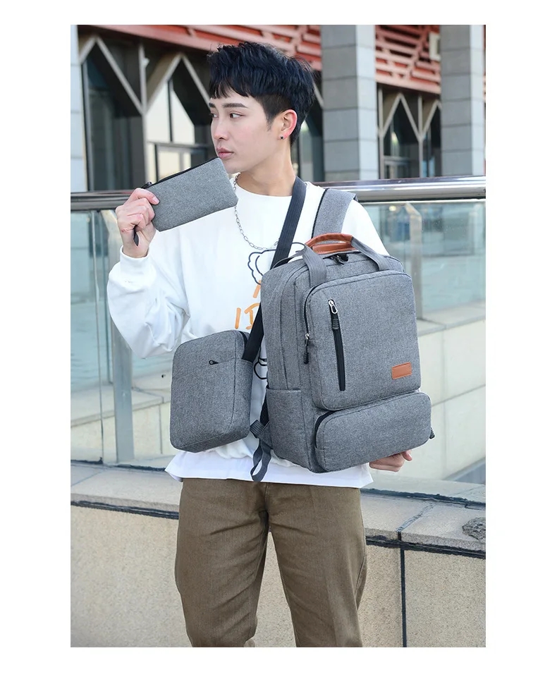 3pcs set includes 1* Backpack + 1* Middle Shoulder Bag + 1* Small Pocket.